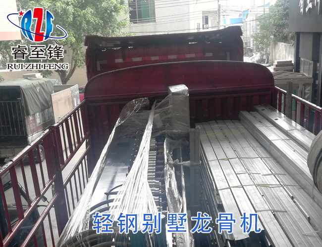 龙骨生产工艺上,我司生产的轻钢别墅加工设备,可完成冲孔、成型、喷码、自动剪切等工序,冲孔包括:管线孔、腹板穿孔、切边、倒角、酒窝孔等。为保障房屋结构的稳固性,生产加工完成的龙骨型材精度0.3,在后续龙骨组装过程中,除了方便组装人员快捷安装,也保证了龙骨天地骨和竖骨之间的连接紧密,实现天地骨和竖骨双重承重,房屋结构更加稳定稳固,保证房屋结构地域外部强风和地震等自然灾害。